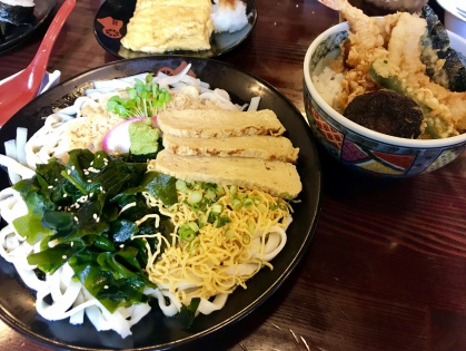 お店の前の水車が目印の「そば茶屋」さん。オススメです。うどんと天丼まで注文しました^ ^