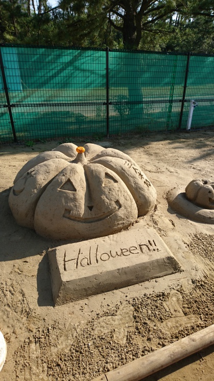 写真は芦屋にあるプール「アクアシアン」で開催されている『あしや砂像展』で砂でつくたれたハロウィンのかぼちゃさん。このイベントでは他にも宇宙をテーマにたくさんの素晴らしい作品がたくさんでした。とても自然のもので作ったとは思えないほど、繊細に作られていました(^^)