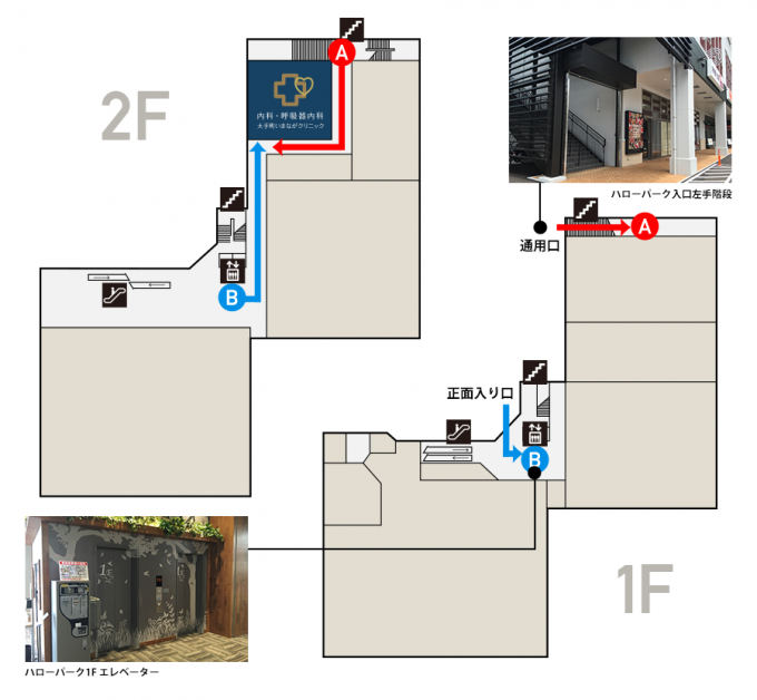 当クリニックは小倉北区大手町ハローパーク内(2F)に位置します。ご来院の際は公共機関又はお車をご利用下さい。駐車場はハローパーク駐車場をご利用いただけます。